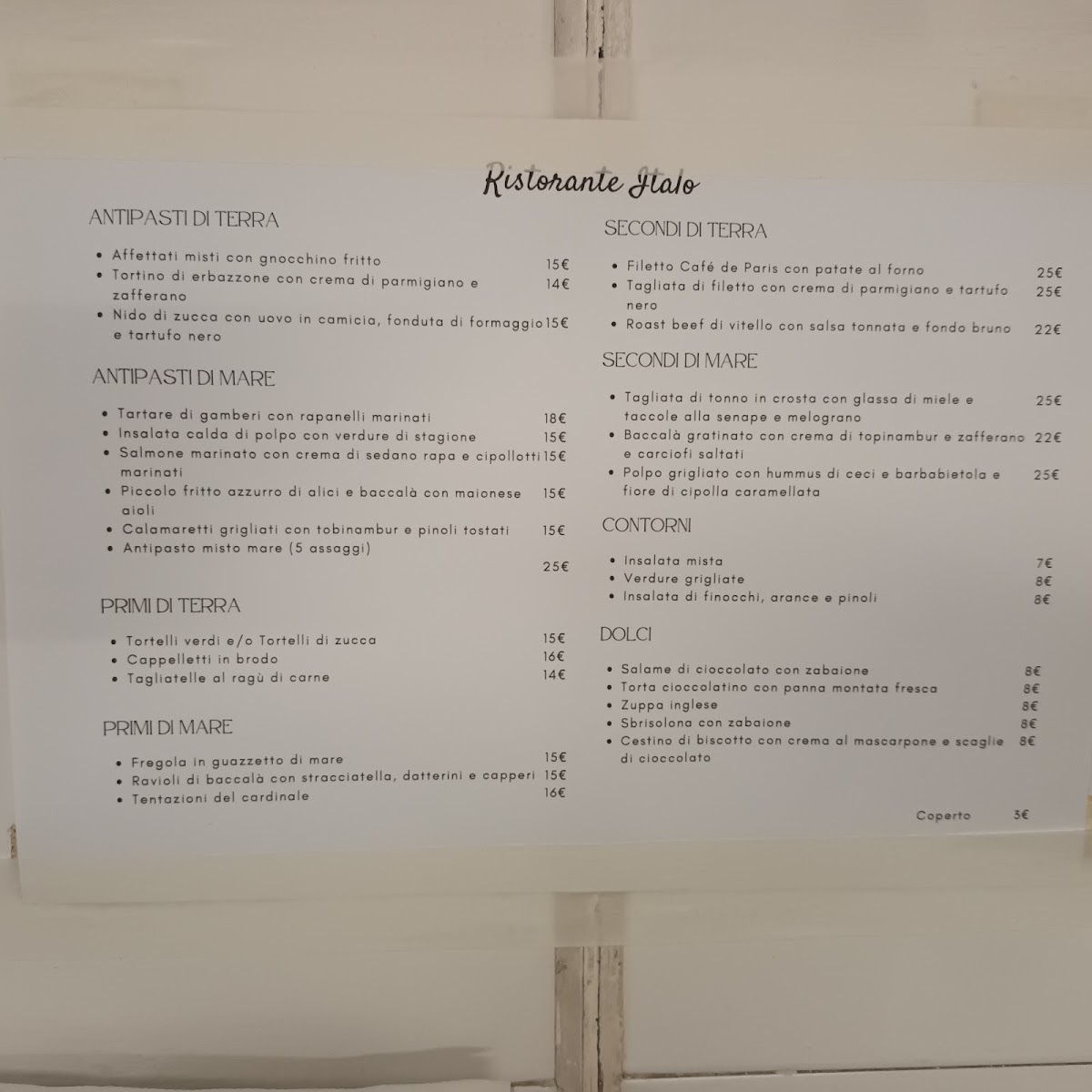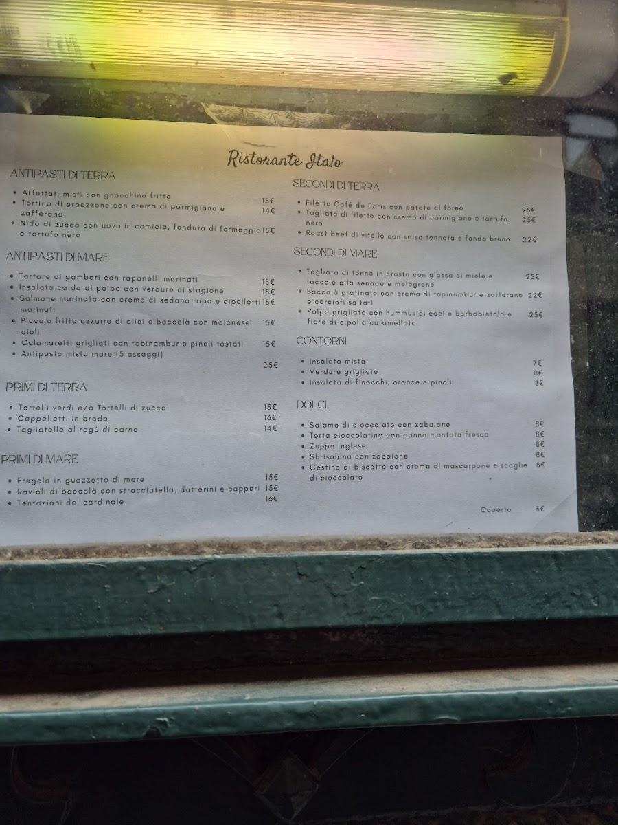 Finally, the dessert menu offers tempting options like Salame di cioccolato con zabaione, a chocolate salami with zabaglione, and Cestino di biscotto con crema al mascarpone e scaglie di cioccolato, a biscuit basket with mascarpone cream and chocolate shavings, providing the perfect sweet ending to the meal. The menu at Italo Reggio Emilia masterfully combines tradition with creativity, offering something for every palate.